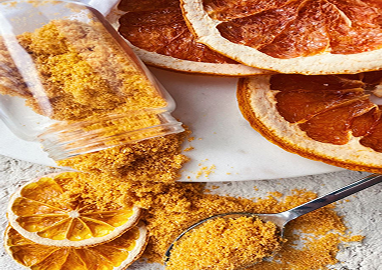 How its made Fresh oranges are washed, peeled, and segmented. The pulp or peel is processed depending on the requirement. They are then dried using sun drying, oven drying, or spray drying methods. Once fully dried, the material is ground into a fine powder and packed hygienically.