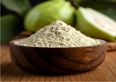 How its made Fresh white guavas are washed, peeled, and sliced into small pieces. The seeds may be reduced or removed for better texture. They are then dried using sun drying, oven drying, or food dehydrators. Once fully dried, they are processed into flakes or ground into a fine powder.